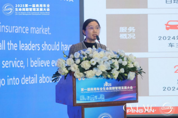 中国平安财产保险股份有限公司北京分公司北京工程机械事业部团队经理何凯娟女士以《保险商用车全生命周期的“安全锁”与“助推器”》为题,深入剖析了保险服务如何超越传统车险,深度融入商用车全生命周期。她详细介绍了如何通过“车险+非车险”产品组合(如延保、利润损失补偿、置换保险等),将保险服务从单一的售前环节延伸至车辆运营、维保乃至退役置换的全过程;另一方面借助货运险、司机意外险、车辆延保等产品,帮助车企拓展营收维度,同时降低车主全生命周期成本。何凯娟指出,将这些产品与维保服务打包成“TOC全生命周期解决方案”,不仅能帮助车队客户锁定长期成本、分散风险,更能为经销商创造持续的收入来源和极强的客户粘性,实现多方共赢。